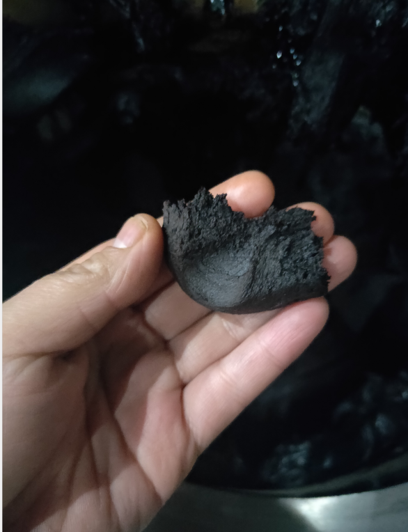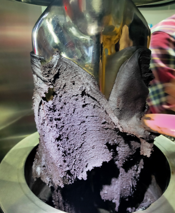 物料呈高粘度的膏體狀,第一代就是靠人工棒打,截至目前更新代換也是先用密煉機(jī)攪拌,攪拌之后在用壓面機(jī)來(lái)回碾壓。立式捏合機(jī)的捏合功能剛好代替兩種,經(jīng)過(guò)捏合實(shí)驗(yàn),客戶(hù)成型的產(chǎn)品效果相當(dāng)好。如此粘度之高的物料,擠壓出料干凈幾乎無(wú)殘留讓客戶(hù)甚是滿(mǎn)意,生產(chǎn)直接提高60%效率。